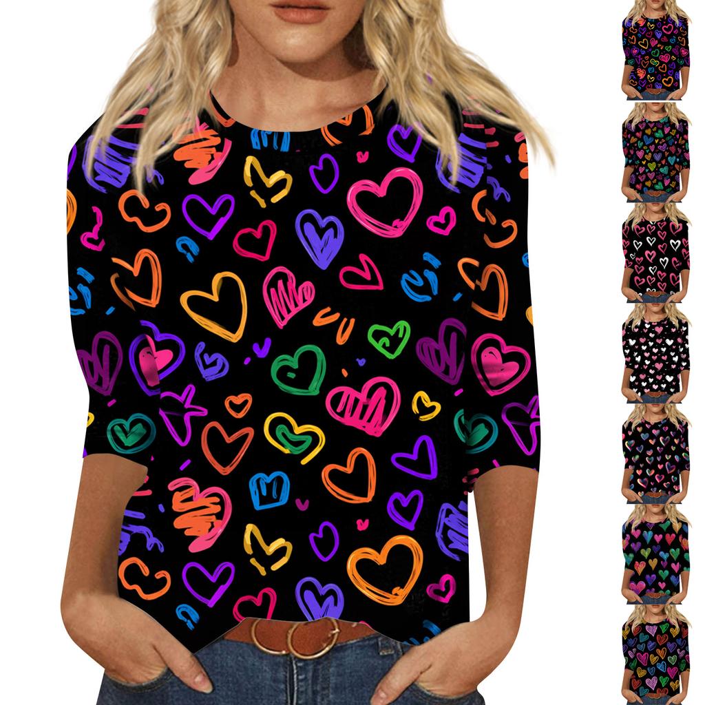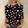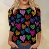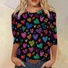 Women's Tops Three-quarter Sleeve Shirt V-neck Loose Casual Shirt Print T-shirt