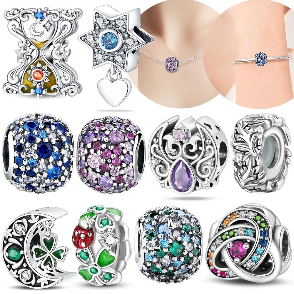 Exquisite Green Zircon Four-Leaf Clover Star Ladybug Original Charms Beads Fit Bracelet Copper Women Diy Gift Accessory