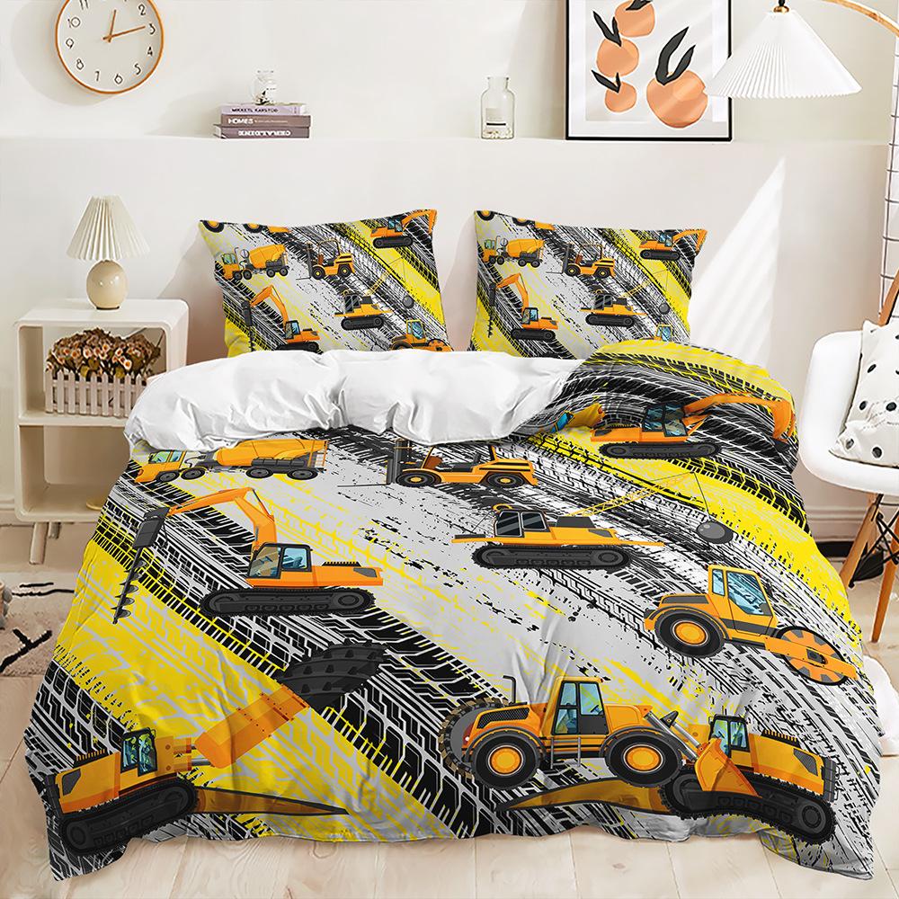 Three-Piece Bulldozer Large Truck Quilt Cover Two-Piece Bedding Kit