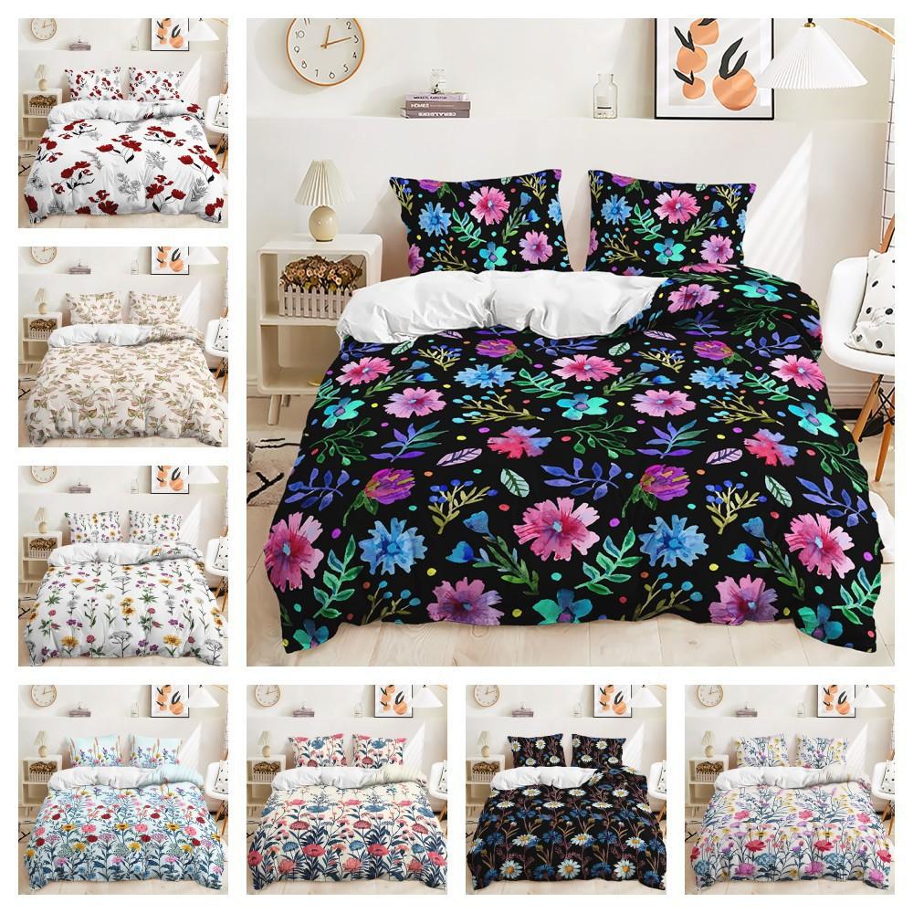 Bed Three-Piece Plant Floral Kit Pastoral Quilt Cover Two-Piece Bedroom