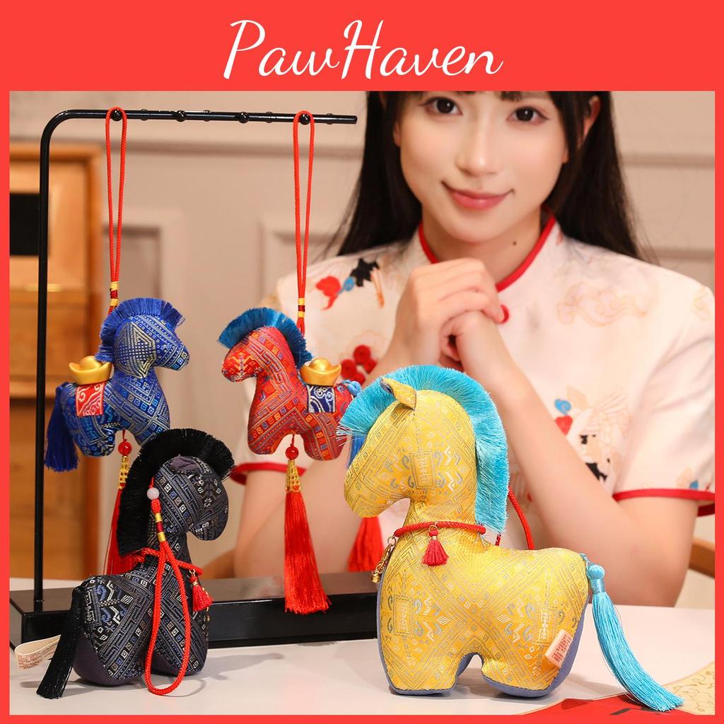 Chinese Zodiac Year Of The Horse Plush Toy With Necklace And Tassel Decorations For New Year Gifts