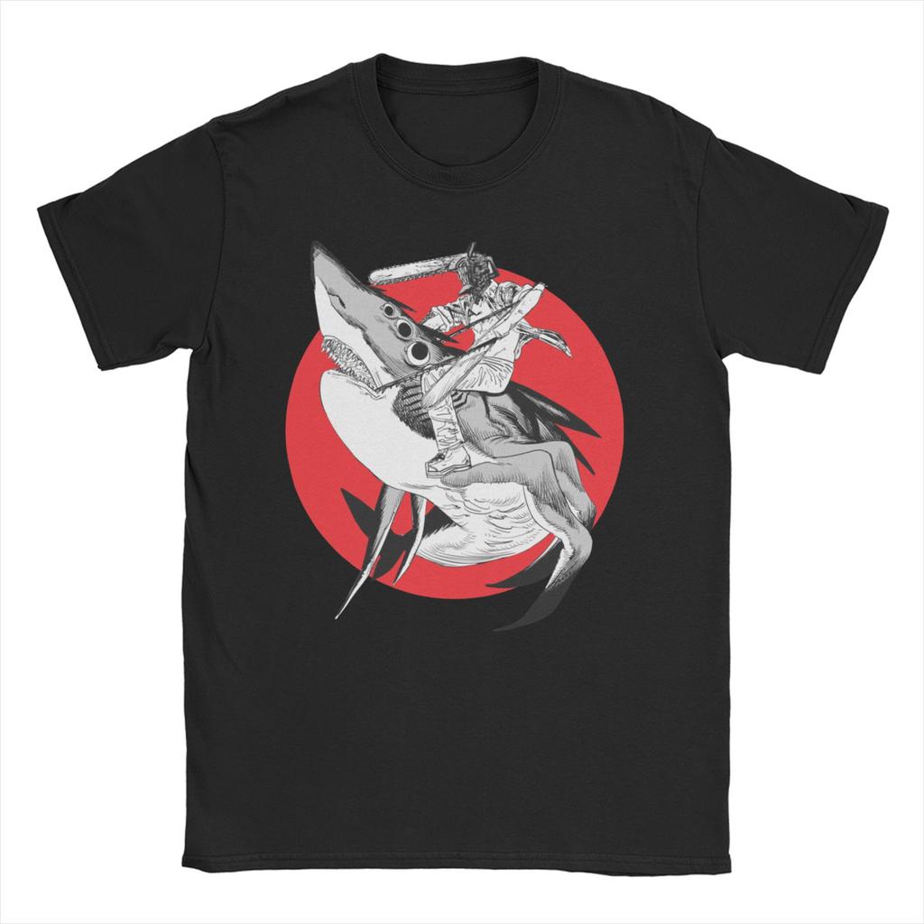 Shark and Denji T Shirts for Men Women Pure Cotton Awesome T-Shirt O Neck Chainsaw Man Manga Devil Makima Anime Tee Shirt 6XL