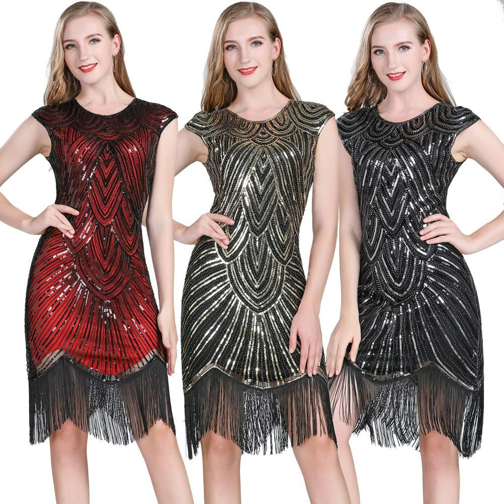 Retro Sequined Tassel Skirt Toast Dress Tassel Dress Party Dance Dance Party Dance Skirt Holiday Gift