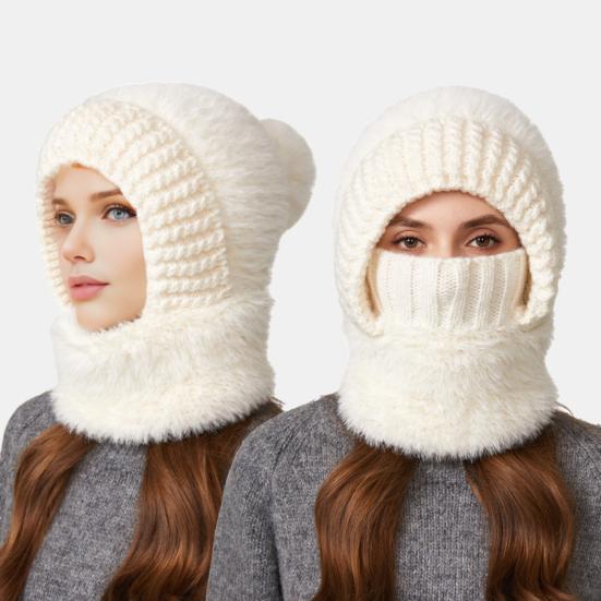 Riding Headgear 3 In 1 Hat Scarf Face Guard Solid Decor Thickened Warm Color Plush Ball