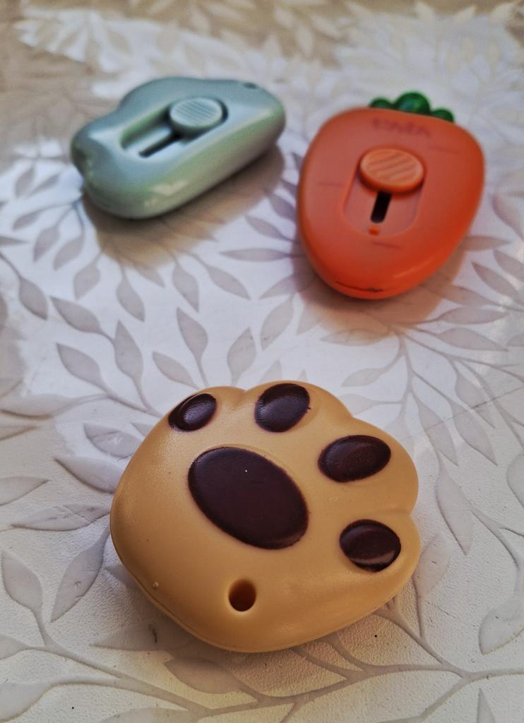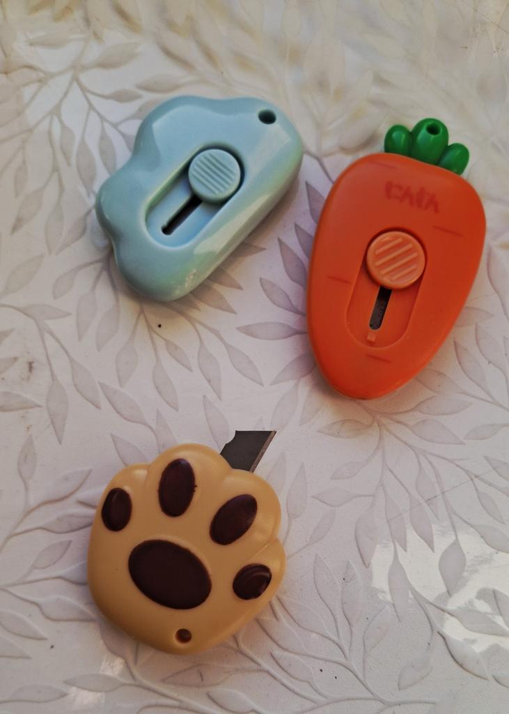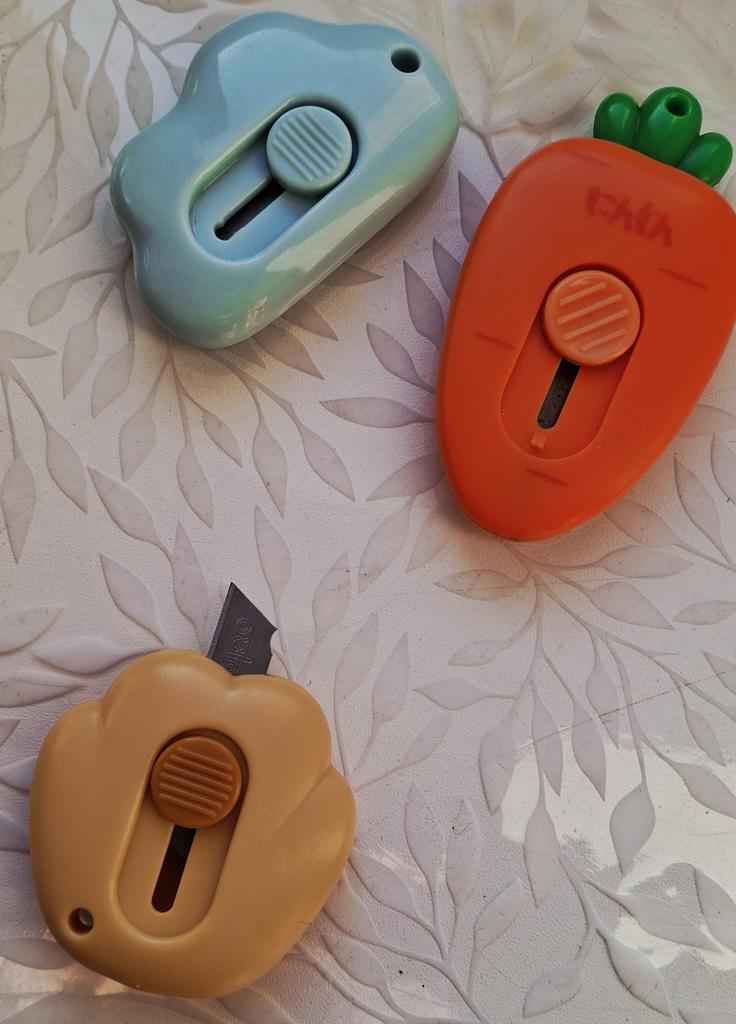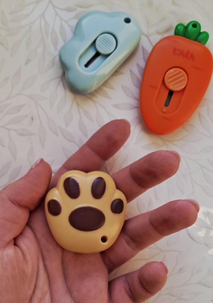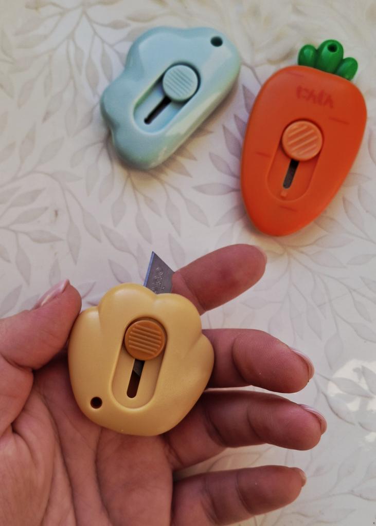 one of those impulse purchases that end up being the most used on the desk. It's the perfect combination between "kawaii" aesthetics and pure functionality for day-to-day use. What I like most is its extreme portability. Being so small and rounded, it fits in any corner of the case or even hung on the keys thanks to its small side hole. The blade is retractable and has a sliding locking system, which gives you a lot of security when using it; it only comes out when you want it to. Although it looks like a toy, the edge is surprisingly precise and resistant, ideal for opening Amazon packages in a second, cutting clothing labels, or doing crafts that require a clean cut.