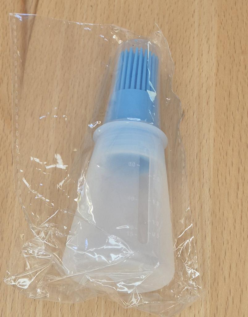 * Silicone bottle for brushing on marinades * ⭐⭐⭐⭐⭐ 💥𝗟𝗶𝗲𝗳𝗲𝗿𝘇𝗲𝗶𝘁 A good 2 weeks to Germany 💥𝗟𝗶𝗲𝗳𝗲𝗿𝘂𝗺𝗳𝗮𝗻𝗴 Included in the scope of delivery is 1 silicone bottle with blue silicone brushes and lid. It is only available in one version. The whole thing was packaged in a simple foil . 💥𝗤𝘂𝗮𝗹𝗶𝘁ä𝘁 I am very excited about the idea . 👌 This is a silicone bottle that is very soft and can be filled with any liquid. Above there is a kind of silicone brush, with which one can baste the meat or the vegetables with the corresponding marinade. The silicone brushes can be protected from dust with an additional cap, which is also included in the scope of delivery.. The APPLICATION is very light: One fills the bottle with the corresponding marinade or dressing, puts the silicone brush back on top (attach or twist) and starts to brush the food with the brush. The liquid flows out of the silicone bottle and one can distribute everything wonderfully with the small bristles on the food.. If you squeeze the bottle a little, the liquid comes out more strongly. This makes individual dosing very easy.. I think the idea behind it is super ingenious ! Even cleaning shouldn't be a problem with a small brush and some dish soap.. ❌Disadvantage: Unfortunately, the scale on the silicone bottle is not so easy to see.. For material composition : silicone 💥𝗙𝗮𝘇𝗶𝘁 Super practical silicone bottle with clip-on brush, , to spread marinades or dressing on food. I can recommend this article without reservation ⭐⭐⭐⭐⭐ If you liked my review and it helped with a purchase decision, I would be happy if you followed me here, because many more useful reviews will follow in the near future. 😉