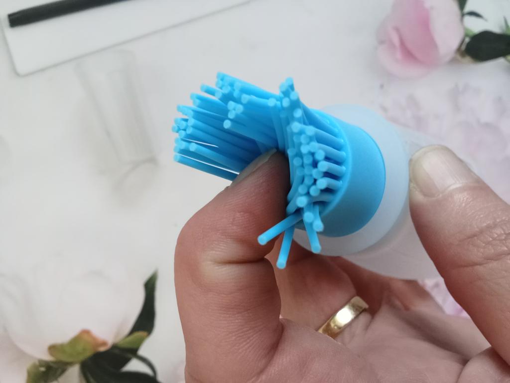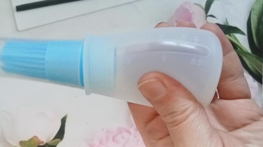 👩🍳 This small plastic bottle with an integrated silicone brush is excellent for applying garlic oil, etc. to grilled food and the like.. 👩🍳 👍 Small, practical, handy, recommendable! 👩🍳 Delivery time three weeks to Austria and consolidated! 🎶 Music from Capcut pro