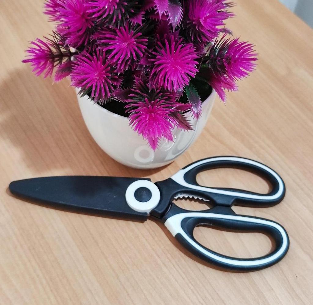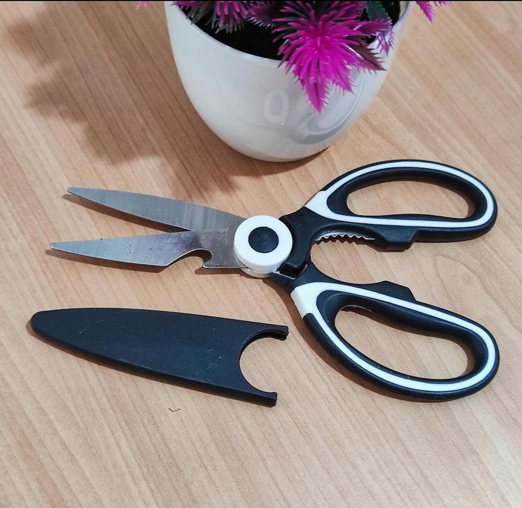 Multipurpose stainless steel kitchen scissors These scissors are simply an excellent addition to any kitchen! They are strong, sharp, and cut easily through almost anything – from poultry and fish to vegetables and tough packaging. The high-quality steel gives a feeling of stability and durability over time, and the handle is comfortable to hold even when working for an extended period.. I especially liked that they are multi-purpose – functioning also as a pruner, which makes them useful also in the garden or for other tasks around the house. Easy to clean and don't rust – an important bonus in a busy kitchen. For those looking for a reliable, strong, and comfortable tool – this is definitely a successful choice.