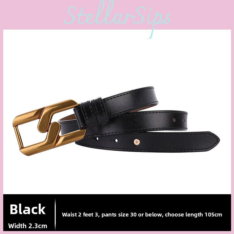 Elegant Leather Belt For Women With Chain Buckle And Classic Design For Casual Wear