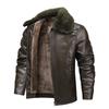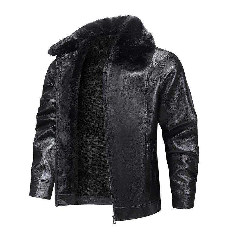 Autumn Winter Turn Down Fur Collar Fleece Lined PU Leather Jacket Men Casual Fashion Coat Warm Outwear Top