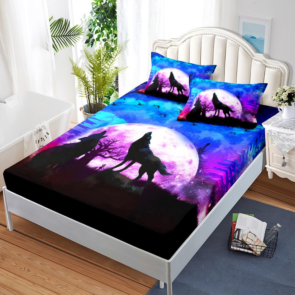 Mattress Mattress Cover Three-Piece Mattress Protective Cover Fully Surrounded Animal Wolf Moon