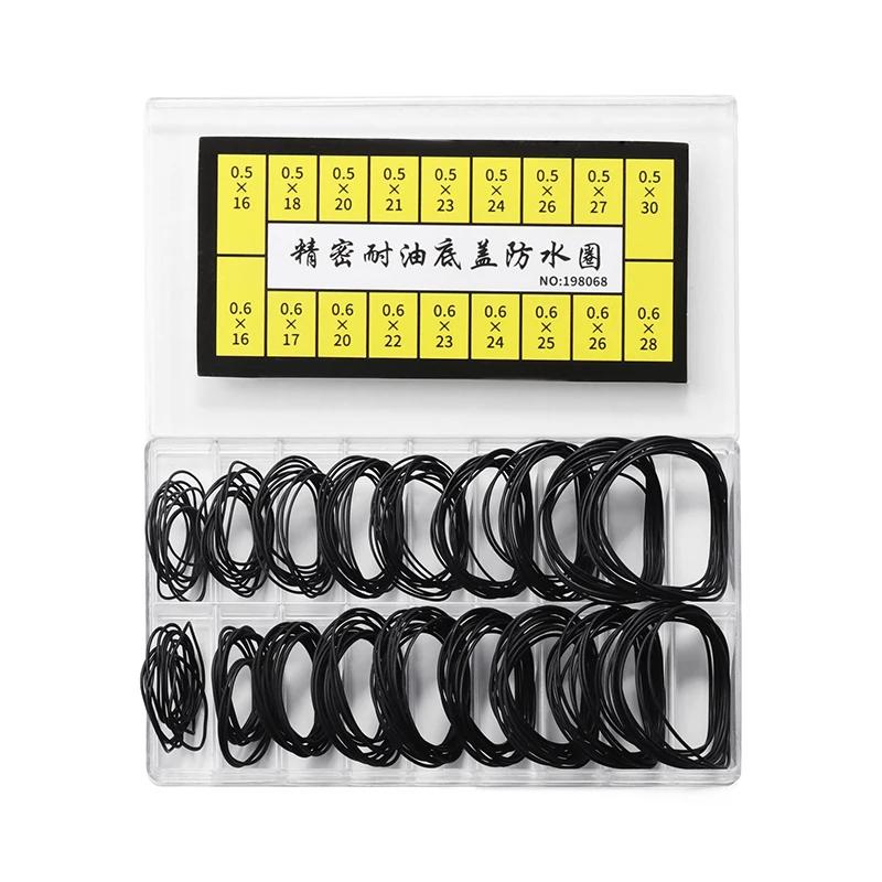 200Pcs Watch Back Case Rubber Waterproof O-Ring Thickness 0.5mm/0.6mm Gasket Repair Tools for Watchmaker High End Boxed 1box