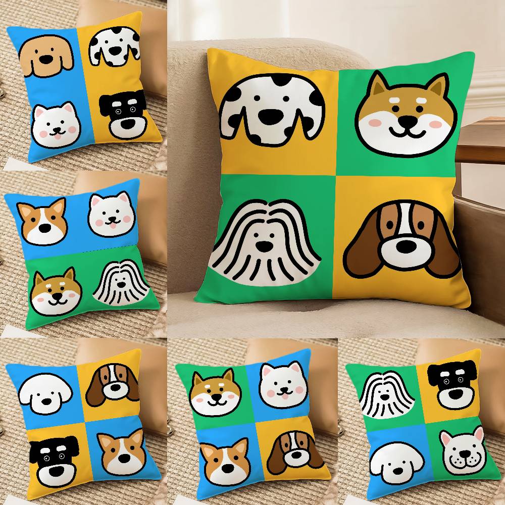 Four-Point Cute Cartoon Dog Pictures Pillow Case Comfort Sofa Bed Silky Elegant Invisible Zipper Decorative Cushion Cover