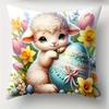 Home Decoration Bunny And Lamb Pattern With Flower And Rainbow Pattern Cushion Cover For Sofa, Bedroom, Car, Pillow Cover