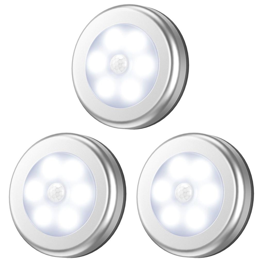 AMIR Motion Sensor Light, LED Night Light with 3M Tape and Magnet, Indoor Use, Wireless, Compact (Silver)