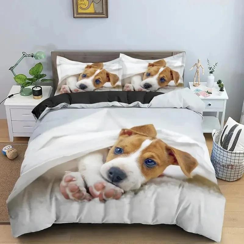3D Print Cute Jack Russell Dog Bedding Set Double Twin King Duvet Cover Comforter Pillowcase Boys Girls Adults Bedroom