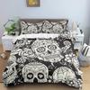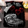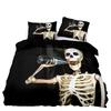 3D Skull Bedding Set King Queen Size Funny Skeleton Smoking Pattern Duvet Cover With Pillowcase Halloween Black Comforter Cover