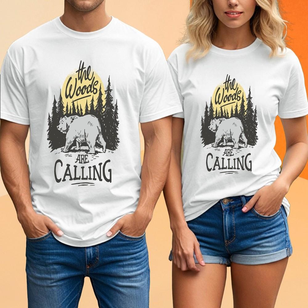 The Woods Are Calling Bear T-Shirt Hiking Nature Adventure Forest Tee Unisex