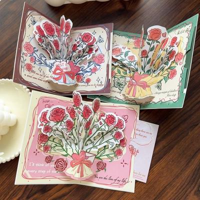10Pcs/Set 3D Cards Bouquet Folding Card Packaging Material Valentines Day Card Gift Cards