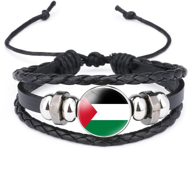 Palestinian Flag Design Gemstone Multi-layer Leather Bracelet Handcrafted Leather Rope Wristband Wholesale