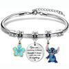The Stitch bracelet is a unique and trendy fashion accessory that features an original and creative cartoon character design. Made from high-quality metal material and Ti-steel plated for added durability and long-lasting shine, this bracelet is suitable for both men and women, making it a perfect gift for different occasions. Whether you're looking for a stylish accessory to add to your collection or searching for a trendy gift for a loved one, the Stitch bracelet is a must-have item. With its unique and creative design, this bracelet is a fun and fashionable way to express your personality and style. So why wait? Order your Stitch bracelet today and let it add some fun and fashion to your look!