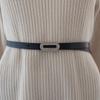 women's leather belt, slim waist belt, alloy snap closure belt, office fashion belt, casual leather waist belt, adjustable women's belt, elegant slim belt, minimalist leather accessory