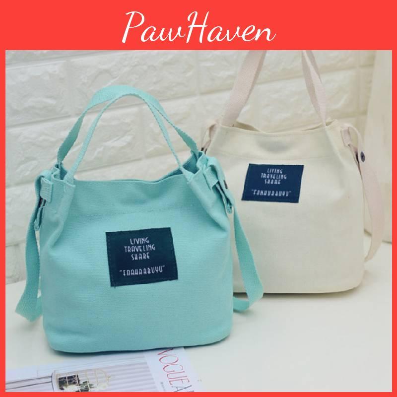 Chic Korean Style Canvas Bucket Bag Vibrant Candy Colors Small Handbag