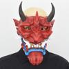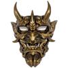 This horror-themed mask features a resin construction with three color options: red, silver, and copper, each measuring approximately 31x23.5cm. Designed as a mythological prop, it supports display and costume use for themed events or holiday celebrations. Easy to clean with a damp cloth, it enhances Halloween, Christmas, or festival decorations with its striking, spooky appearance.