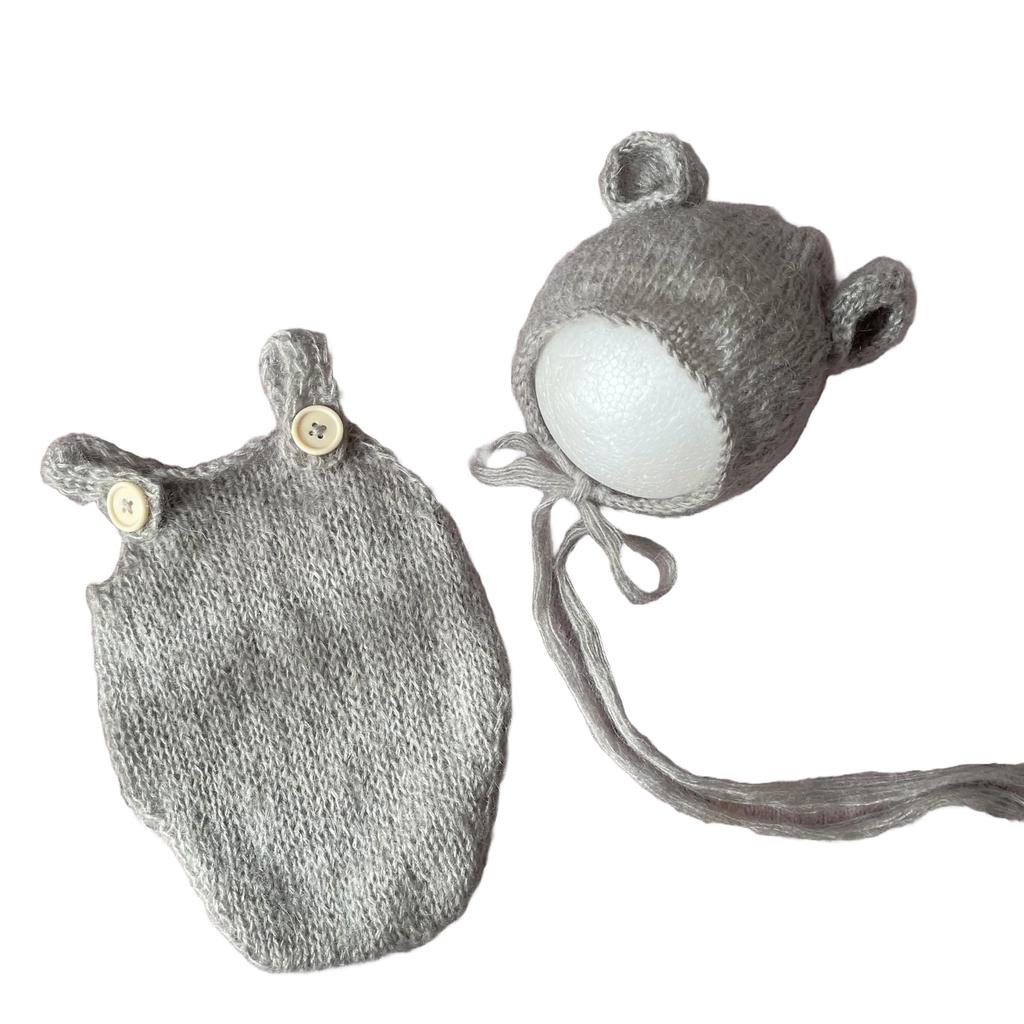 Design: A two-piece set consisting of a bear ear bonnet and overalls, perfect for newborn photoshoots.