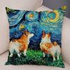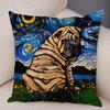 Colorful Oil Painting Pet Animal Pillowcase Starry Sky Art Cartoon Dog Cushion Cover Decorative Sofa