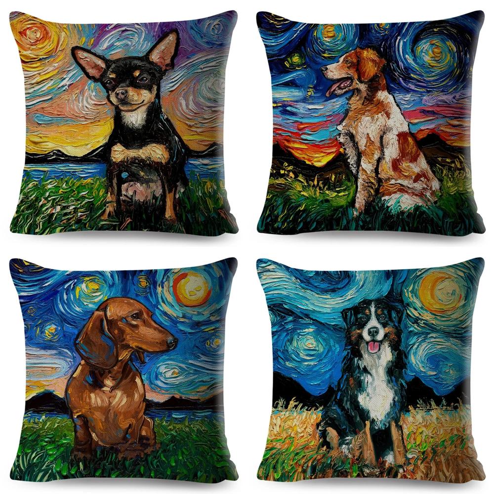 Home Decor Van Gogh Style Dogs Printed Pillow Covers Pattern Cushion Cover Suitable For Sofa Bedroom Car Pillow Cover