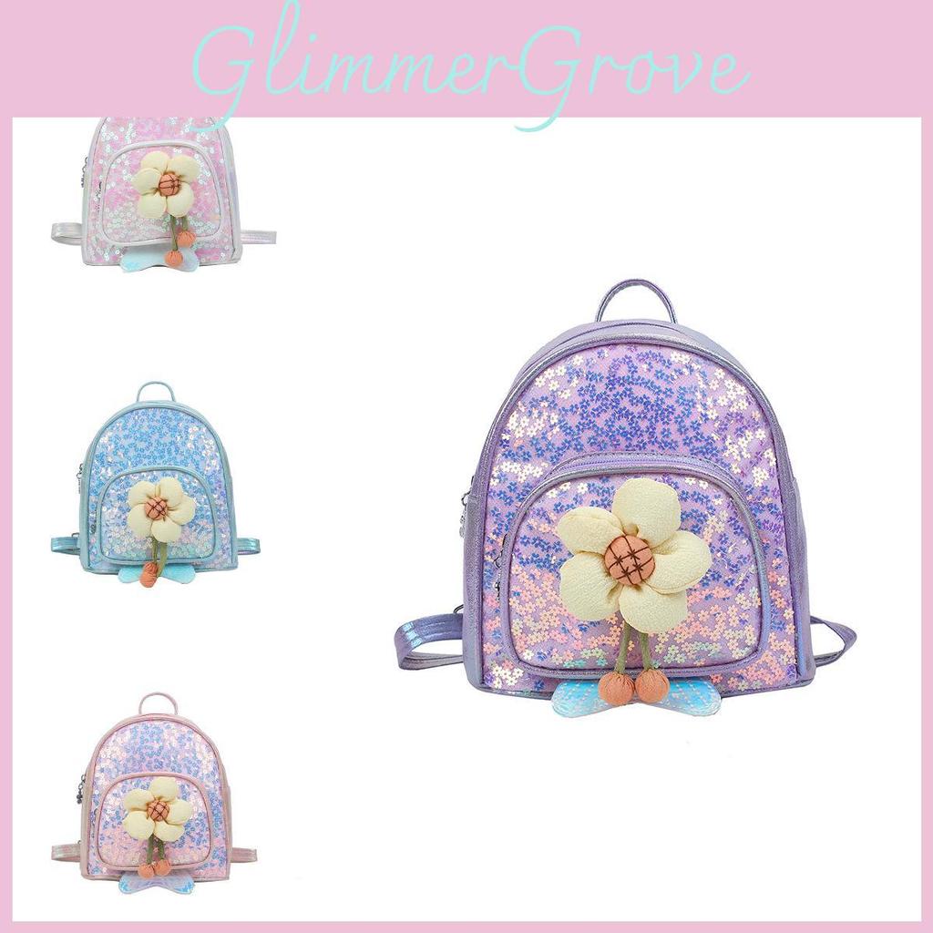 Adorable Flower Sequin Kids Backpack For Girls Lightweight Waterproof School Bag
