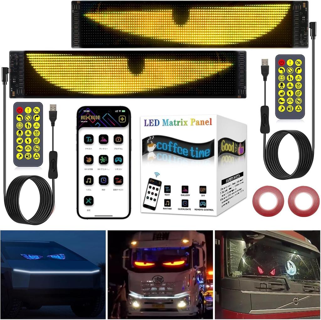 【Programmable Flexible LED Display】Controlled by app and remote control, the programmable flex LED display is ultra-lightweight and thin at just 2mm. Bend, fold, and mold the colorful eye lamp soft screen for car windows to fit various surfaces.
