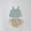 New 2024 Summer Baby Girl Cute Fresh Checkered Tank Top And Floral Skirt Shorts Set