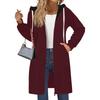 Fashion Women's Solid Color Slim Fit Zipper Round Neck Long Sleeve Loose Hooded Mid Length Coat