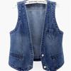 Women's Slim Single-breasted Denim Vest Sleeveless Jacket Solid Color All-match Top Spring Autumn ThreeThree