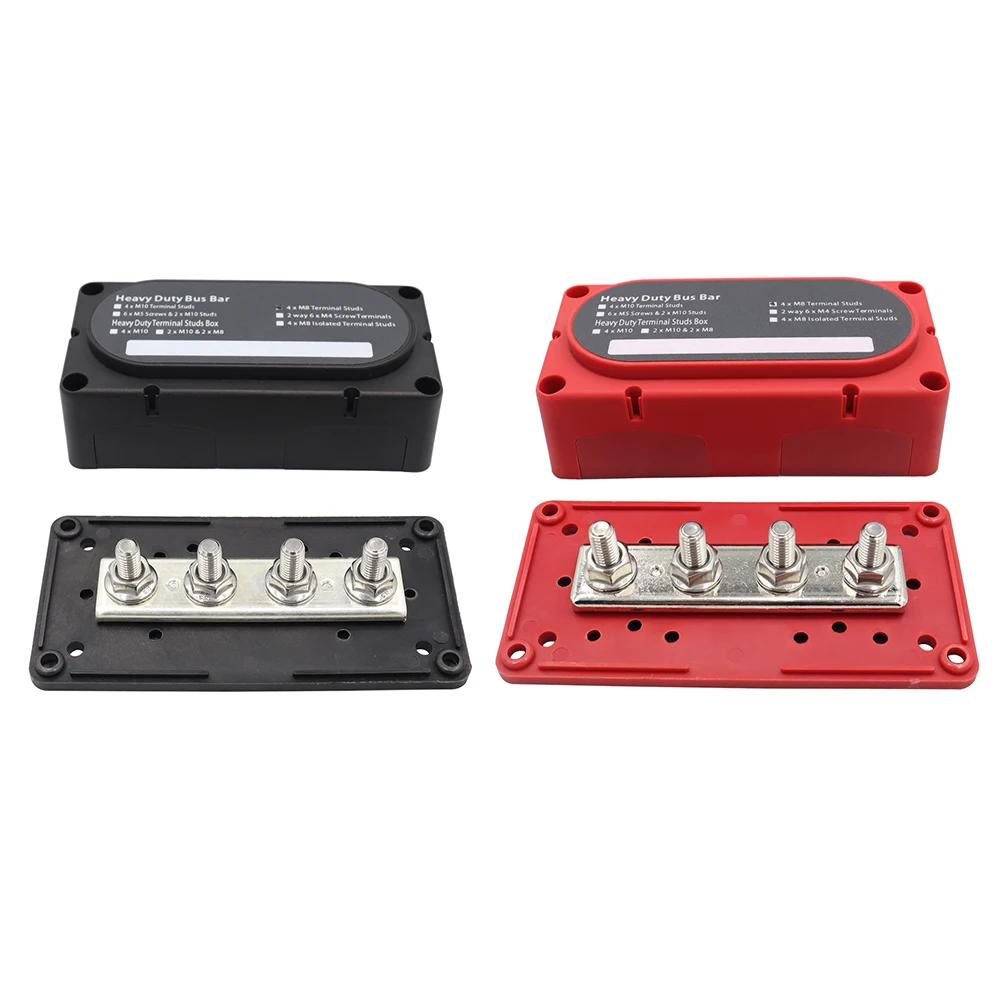 Bus Bar Box Board 300A 4 Terminal M8 Studs High Current Busbar Automobiles Maximum Connection Amplifier Power Case for Car RV