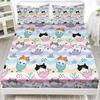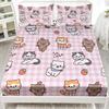 Cute Cartoon Kitten Pattern Bed Hat Three-Piece Digital Printing Bedding Set Adult Children