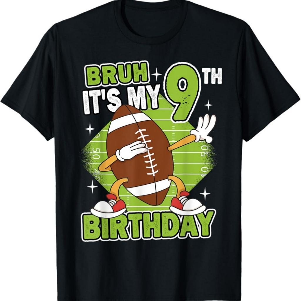 Bruh It's My 9th Birthday American Football Boy 9 Years Old T-Shirt