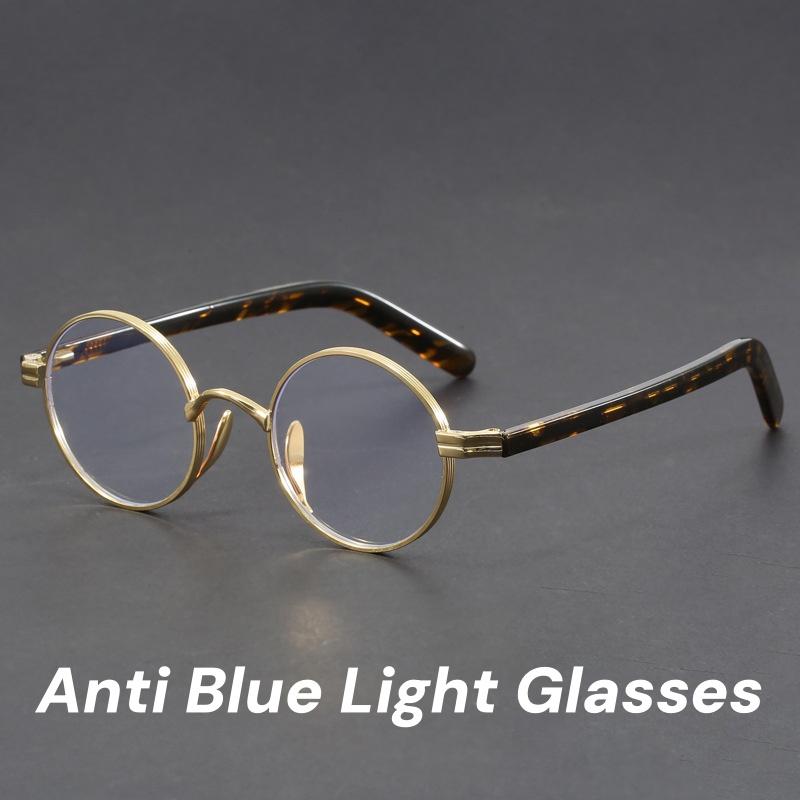Luxury Metal Round Frame Anti Blue Light Glasses Men Vintage Blue Light Protection Eyeglasses HighQuality Computer Plain Glasses