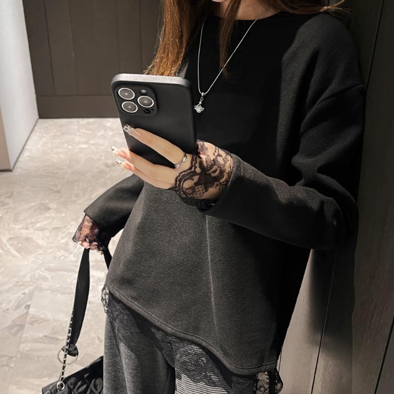 Lace Splicing Long-sleeved T-shirt Women's German Velvet Thickened Casual Inner Top Loose Bottoming Shirt