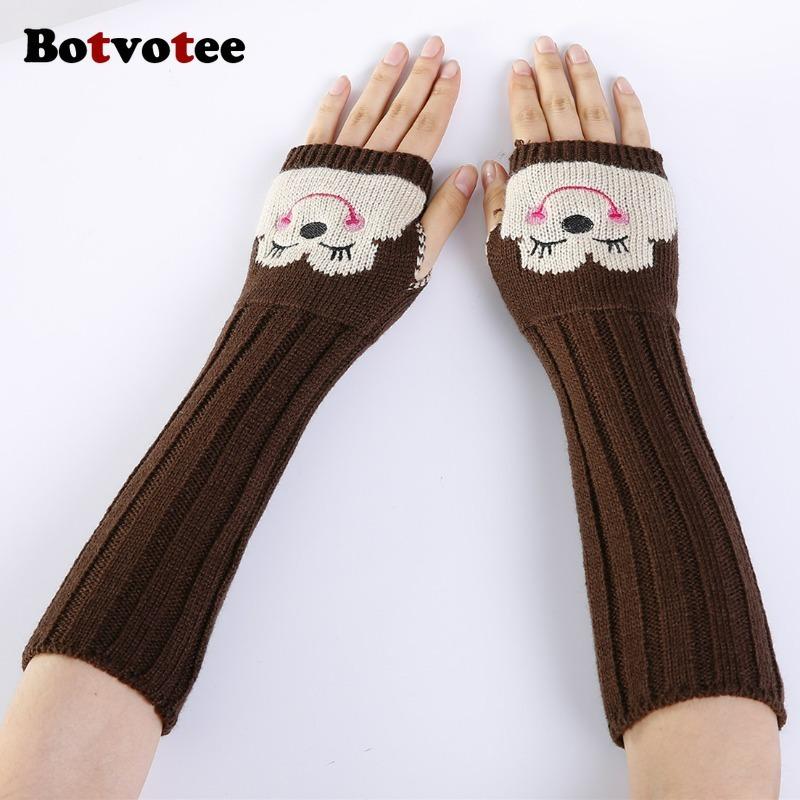 Botvotee Fingerless Gloves Sleeves for Women Y2k Accessories Arm Warmers Winter Embroidery Cute Knit Fashion Hands Free Gloves