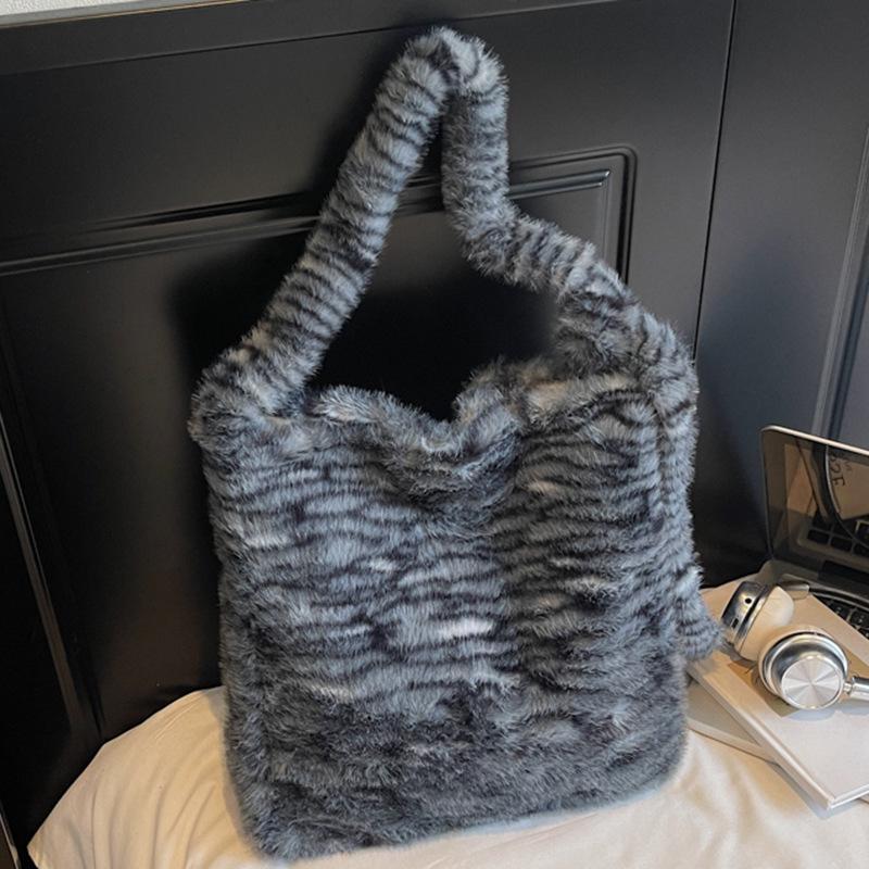 Large Capacity Fluffy Bag Women's Autumn New Casual Soft Surface Fluffy Shoulder Bag Portable Tote Bag