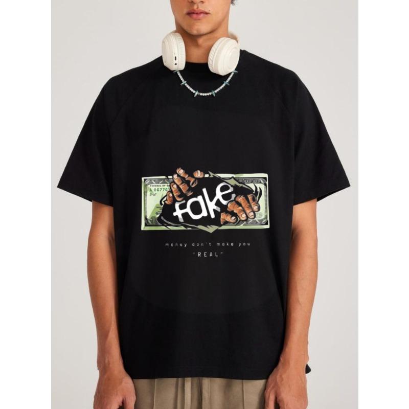 White T Shirt with Money and Hands Graphic Take Print for Casual Wear