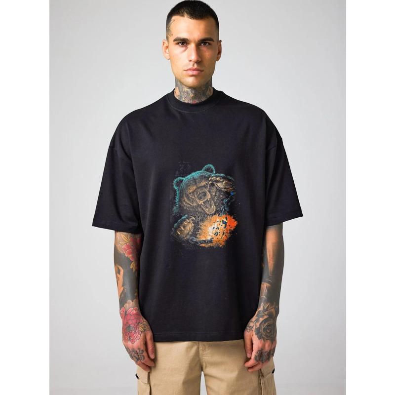 White Oversized T-Shirt with Abstract Tiger Print for Casual Wear