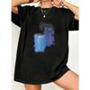 Oversized T Shirt Black Abstract Blue Watercolor Print Casual Wear