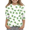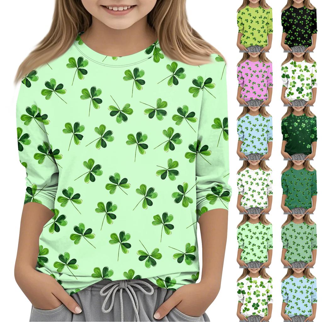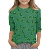 St. Patrick's Day Print Tops For Youth Girls 4-11 Years Round Neck 3/4 Sleeves T-Shirts Trendy Tops Outfit Tees