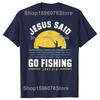 Jesus Christ Said Go Fishing Christian Fisherman Faith Graphic T Shirts Print On Demand Mens Clothing Camisas Streetwear