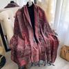 Women'S Fashion Faux Cashmere Winter Wraps Vintage Printed Tassels Thick Warm Pashmina Two-Sided Scarf Outdoor Shawls Foula