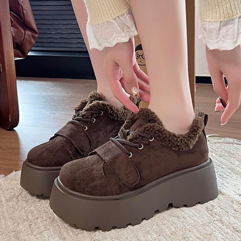 Fur Women Flats Cotton Shoes Platform Warm Snow Boots Fashion Casual Winter Running Shoes Short Plush Cozy Ladies Boots